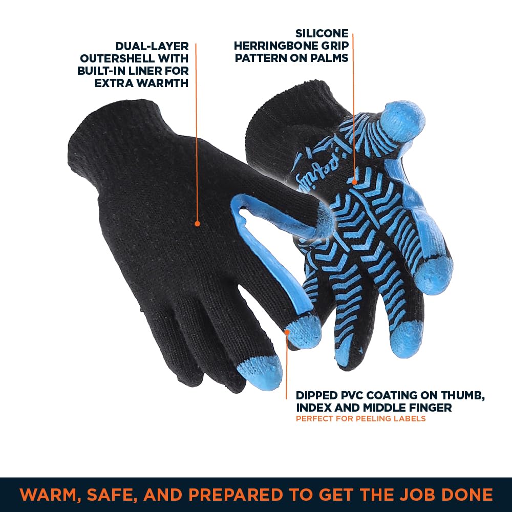 RefrigiWear Dual-Layer Herringbone Grip Unisex Gloves with 3-Finger Dip Heavyweight Knit Workwear for Warmth