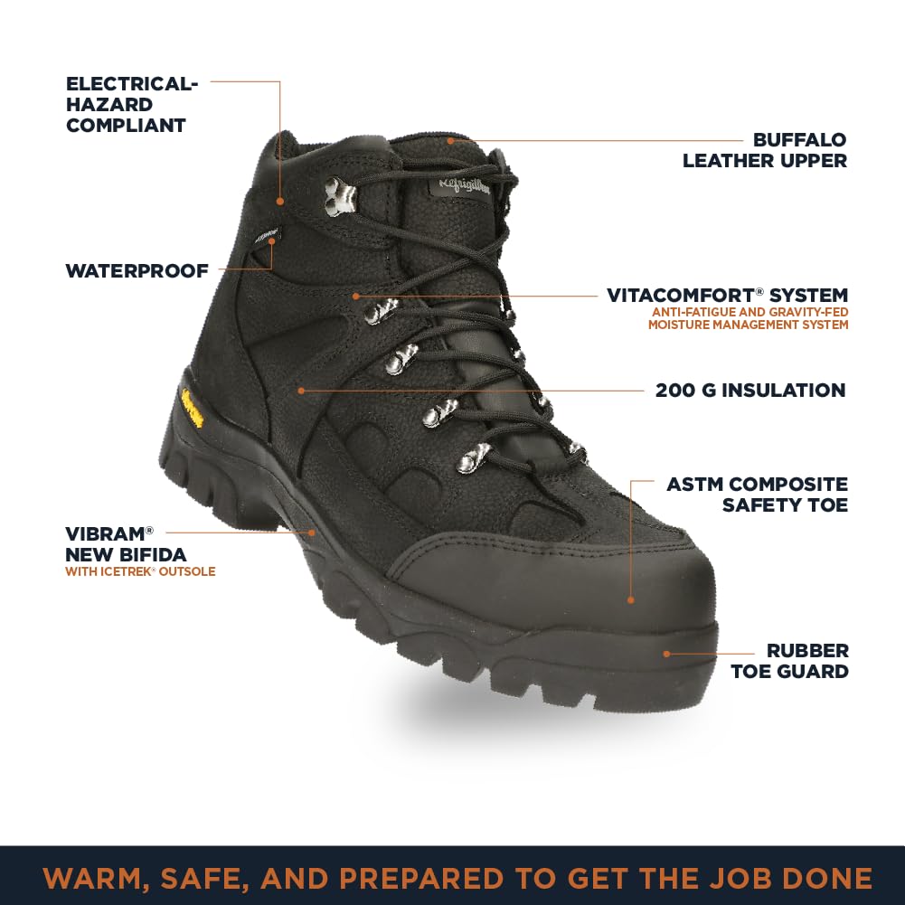 RefrigiWear Men's EnduraMax Boot Waterproof Insulated Leather Work Boot Vibram Outsole Composite Safety Toe