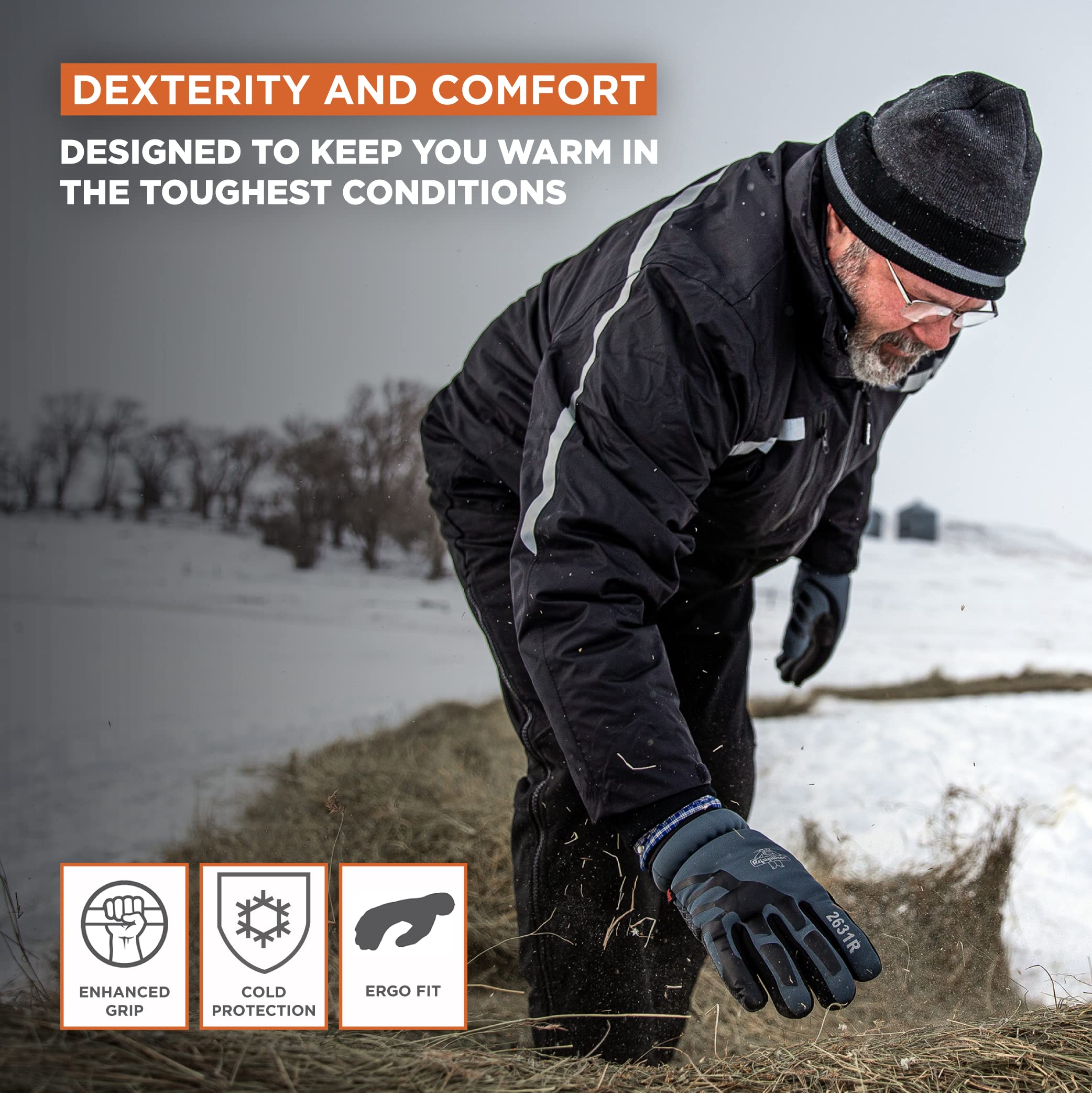 RefrigiWear Thinsulate Insulated Tricot Lined Softshell Gloves with Silicone Grip (Gray, X-Large)—